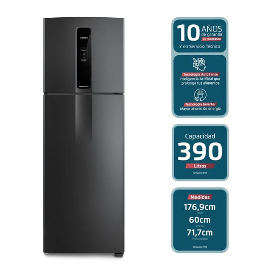 Refrigerador 390L No Frost Top Freezer Inverter con AutoSense IF43B NegroProveedor:FensaPrecio habitual $526.990 CLPPrecio habitualPrecio unitario / por$0 CLPPrecio de oferta $526.990 CLP